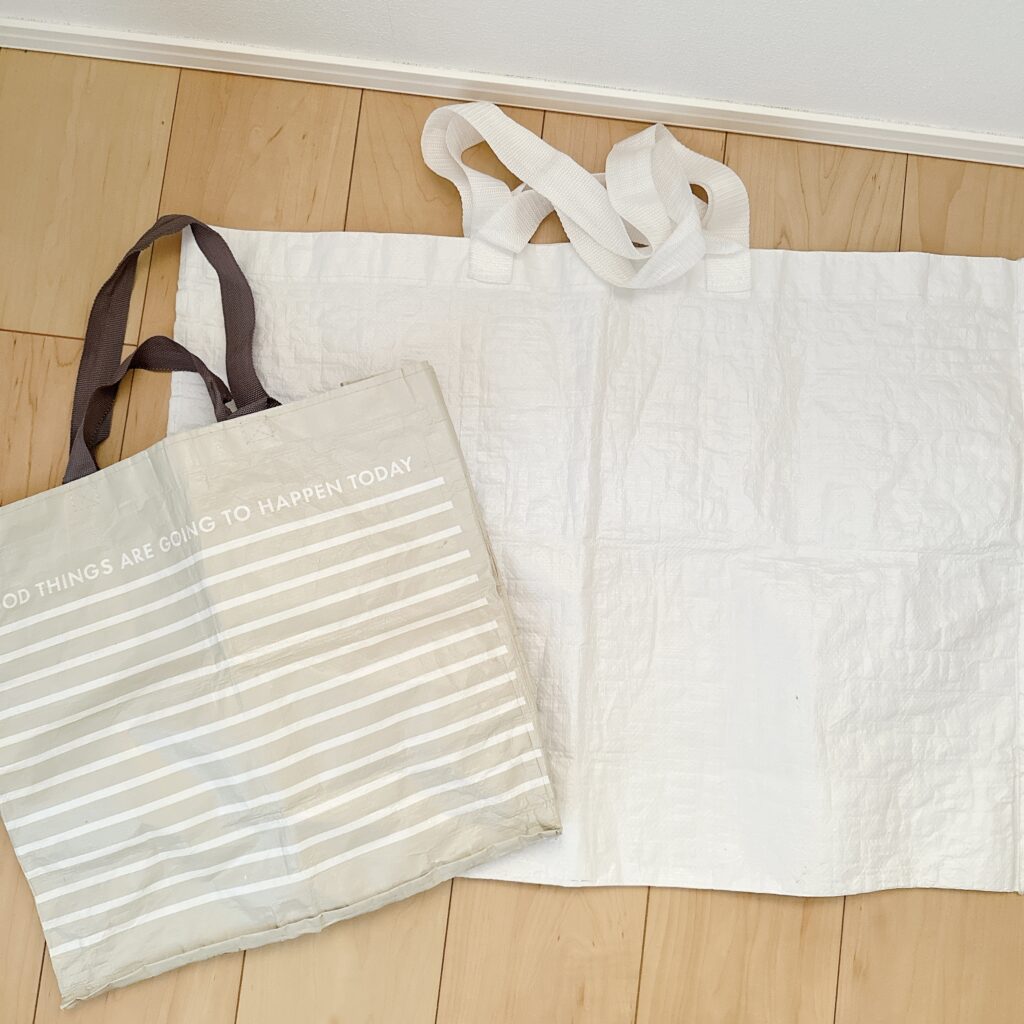 白の特大サイズは、無印良品の再生ポリプロピレンバッグです。