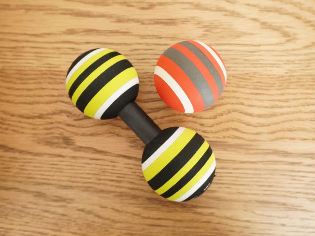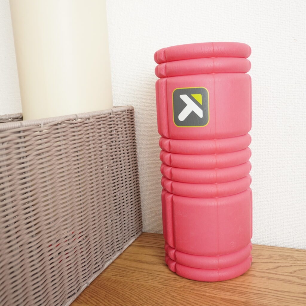 ストレッチポールとフォームローラーは、だいぶ昔に買ったものだからよく見るとボロボロですが、このローラーには日々助けられています。
