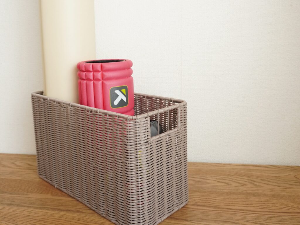 フォームローラーやストレッチポール、他細々したアイテムを使いたい時には近くになくて「どこいったー?」なんてことがあり探し回ってストレス。子供たちも使う時があるから余計に探し物が行方不明に。