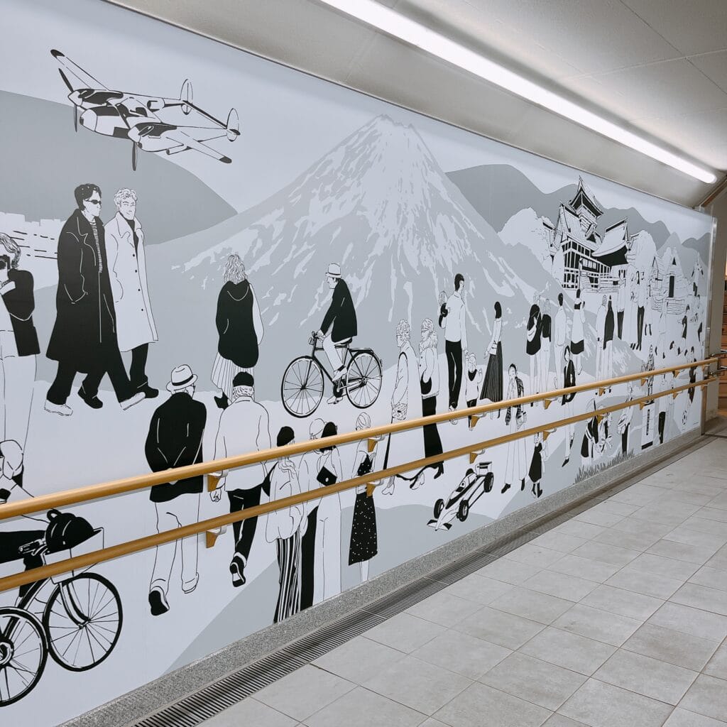 壁面には静岡の名所などを描いたイラストもあって楽しめます♪