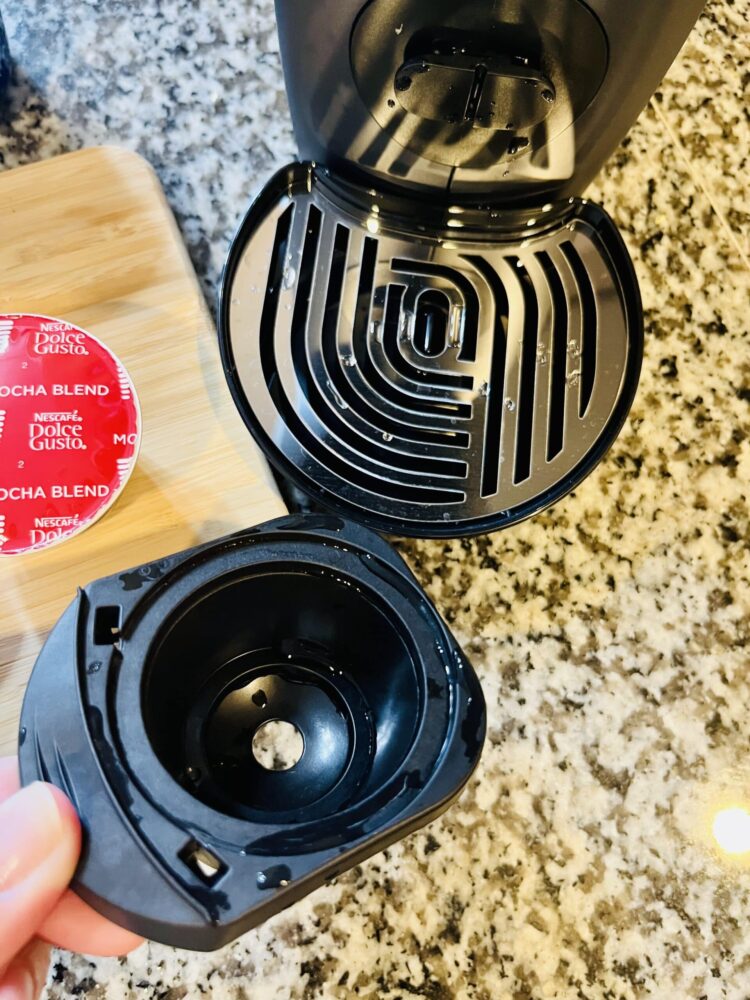 片付けはカプセルを捨てるだけで機械そのものはほとんど汚れず、日々のお手入れは水の入っているタンクのすすぎとカップの下の受け皿のすすぎのみ。