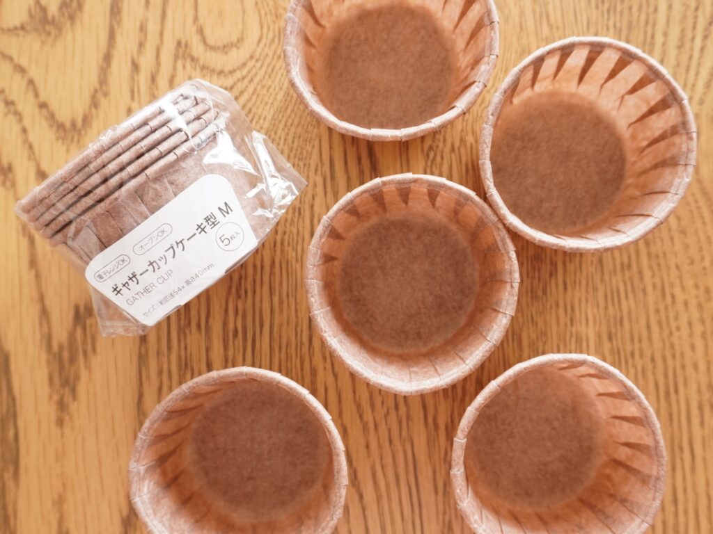 カップは、オーブンOKなカップケーキ型のセリアのものです。