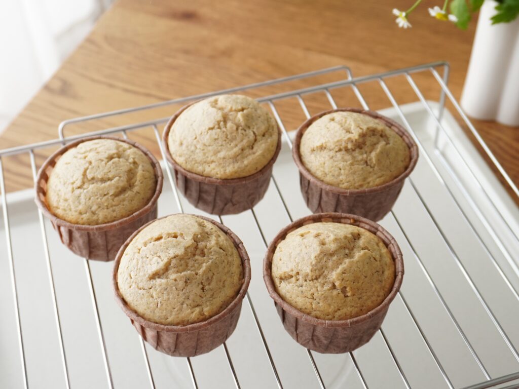 焼き上がりましたーー!アイシングを塗るのでケーキを冷ましていきます。
