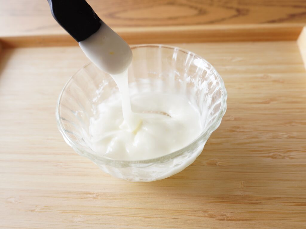 ギリシャヨーグルトを使いますが、わたしは水切りヨーグルトを使用しました。水切りヨーグルトの作り方はレシピにありますよ〜