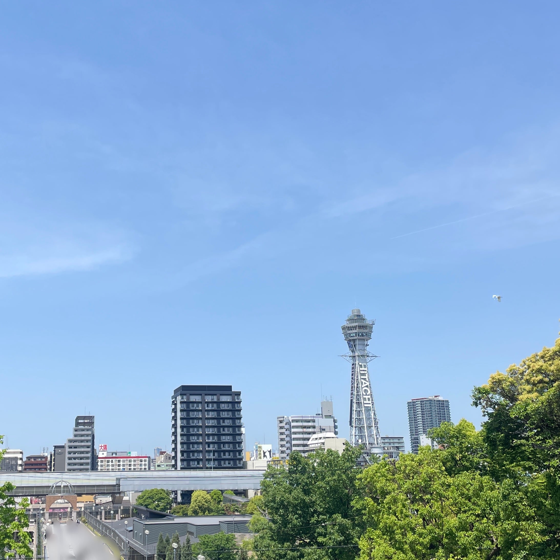 正面入り口前で振り返ると、大阪のシンボルの1つ、通天閣が見えたのも嬉しくなりました!