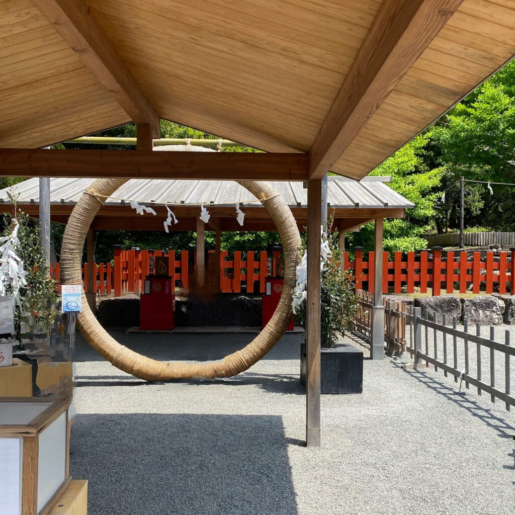 本殿に行く途中、大きな茅の輪がありました。輪くぐりをすると邪気を払いのけるそうです。