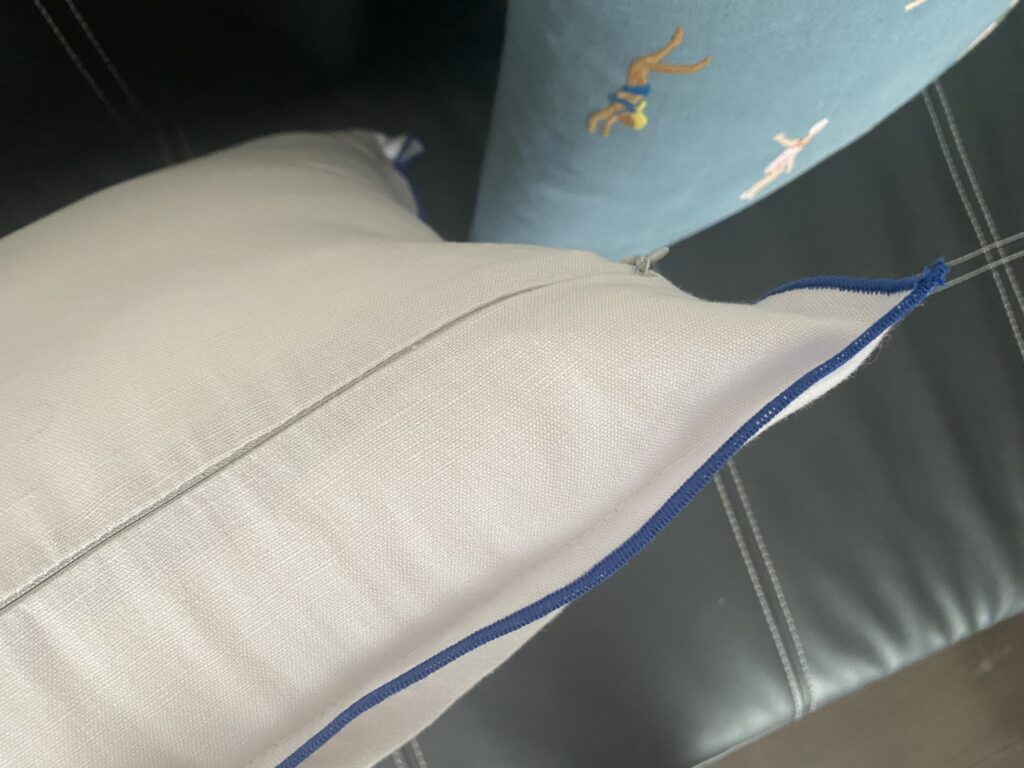 水色のクッションカバーに、ベージュや白、黄色など、候補はいくつかあったのですが…