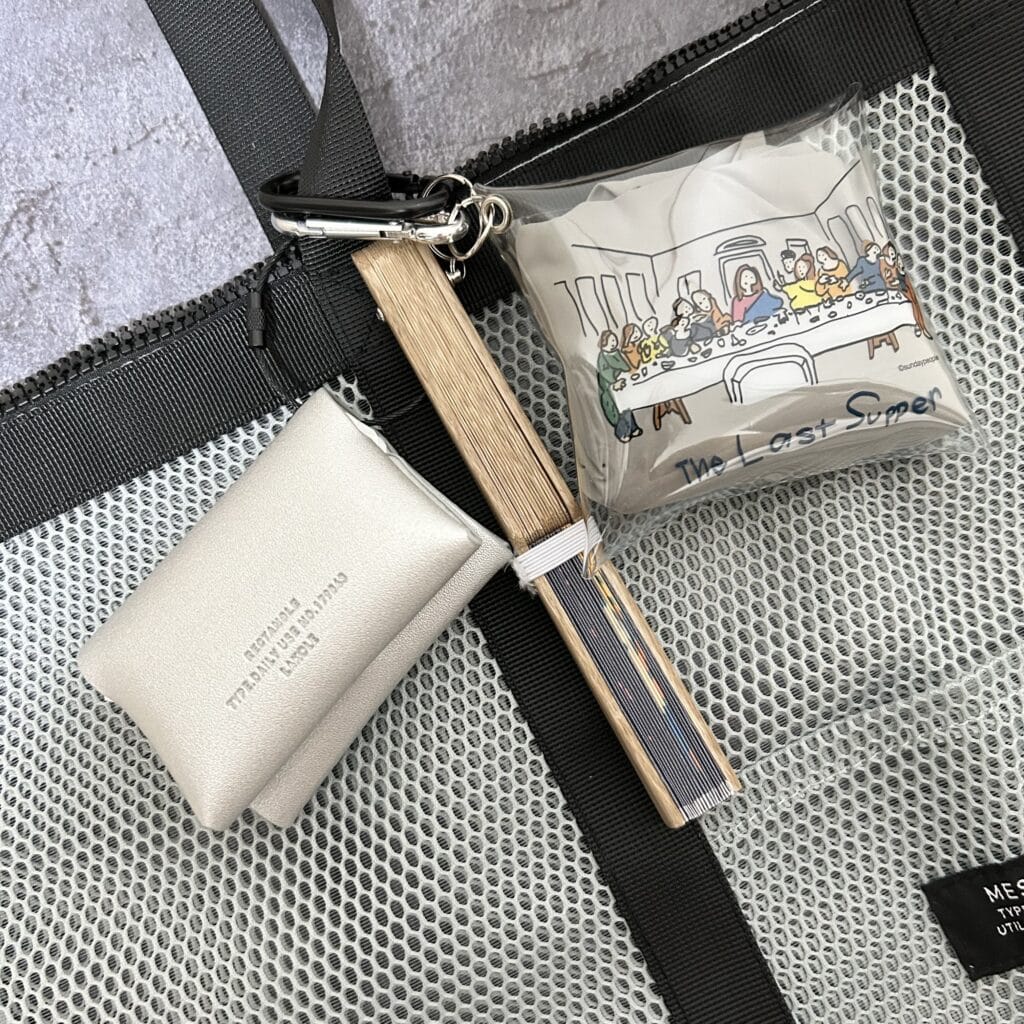 このポーチが可愛いし、カラビナが付いているからバッグにぶら下げておいて、必要な時にサッと取り出せるのが良い✨