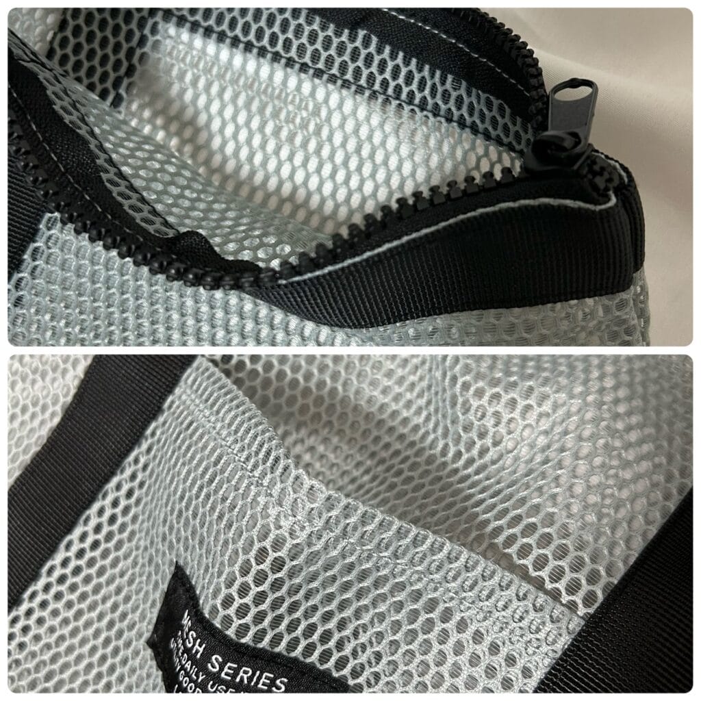 何かと便利な外ポケット付きかつ、バッグ本体にファスナー付きなのが嬉しい。お色はグレーの他にイエロー、ブラック、ホワイトがありました!