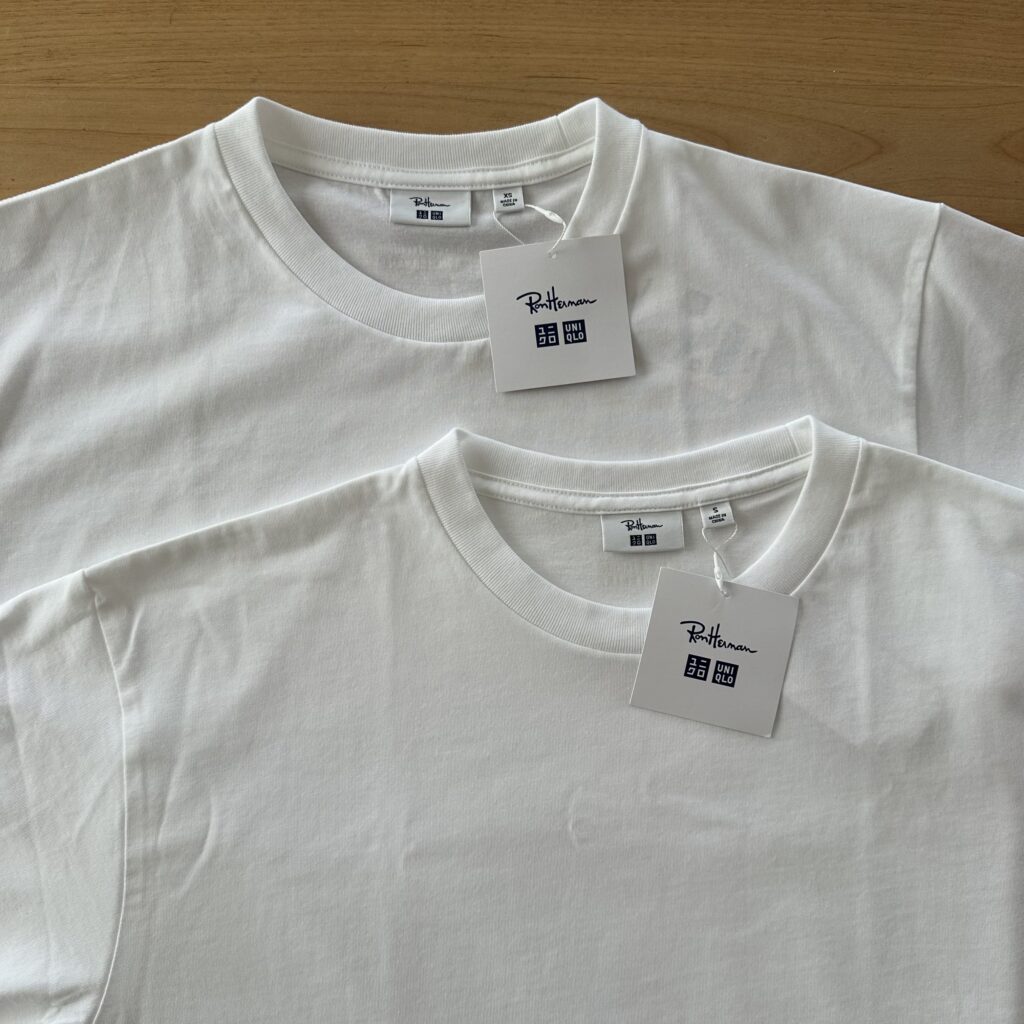 その際、二子玉川のセレクトショップ・ロンハーマン(Ron Herman)とのコラボで〔エアリズムコットンクルーネックT]を発売し、オープン初日はこれを目当てに長蛇の列ができたとか。ニュースを聞きながら「うわぁ~、そりゃ欲しいけど、並ぶのはちょっとねぇ。」なんて話をオットとしていたら後日追加生産のタイミングでオットが予約していてびっくり。(限定という言葉に弱いヒト笑)