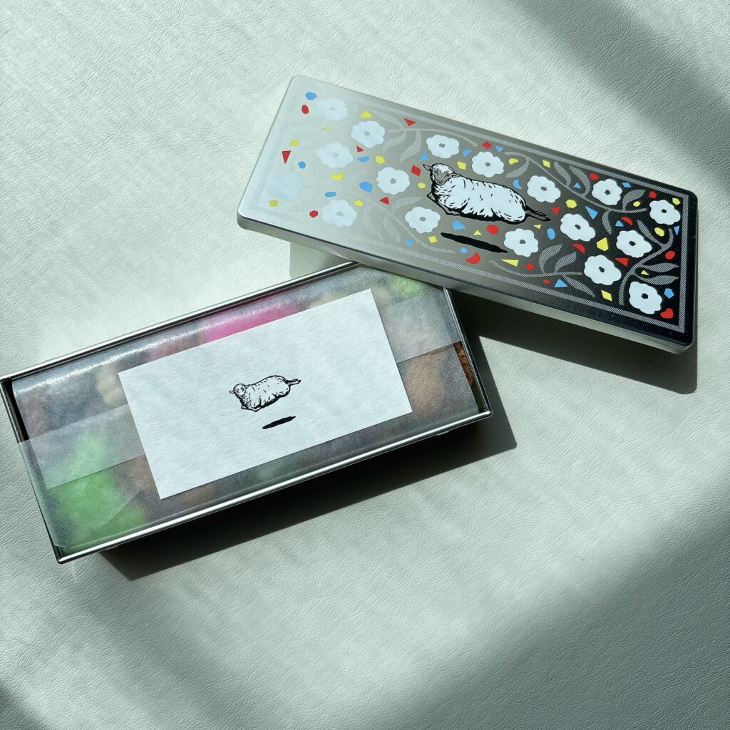到着してすぐだったので、お土産を買うと荷物になってしまうから、改めて帰りにもう一度寄った。そこで購入したのが「ひつじやさんの吹き寄せ缶」。