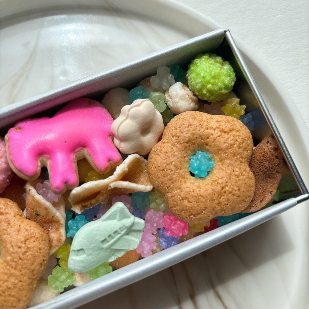 私が空港のHIGHTIDEさんでこれを発見した時「クッキー缶だ♡」と思ったんだけど、よくよく見るとこれはクッキー缶ではなく、和菓子の「吹き寄せ」と呼ばれるもの。