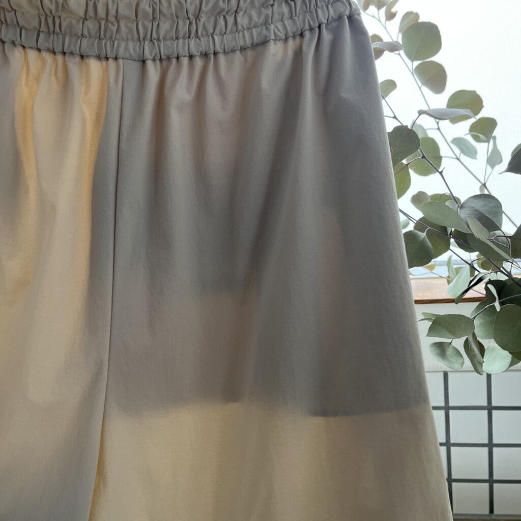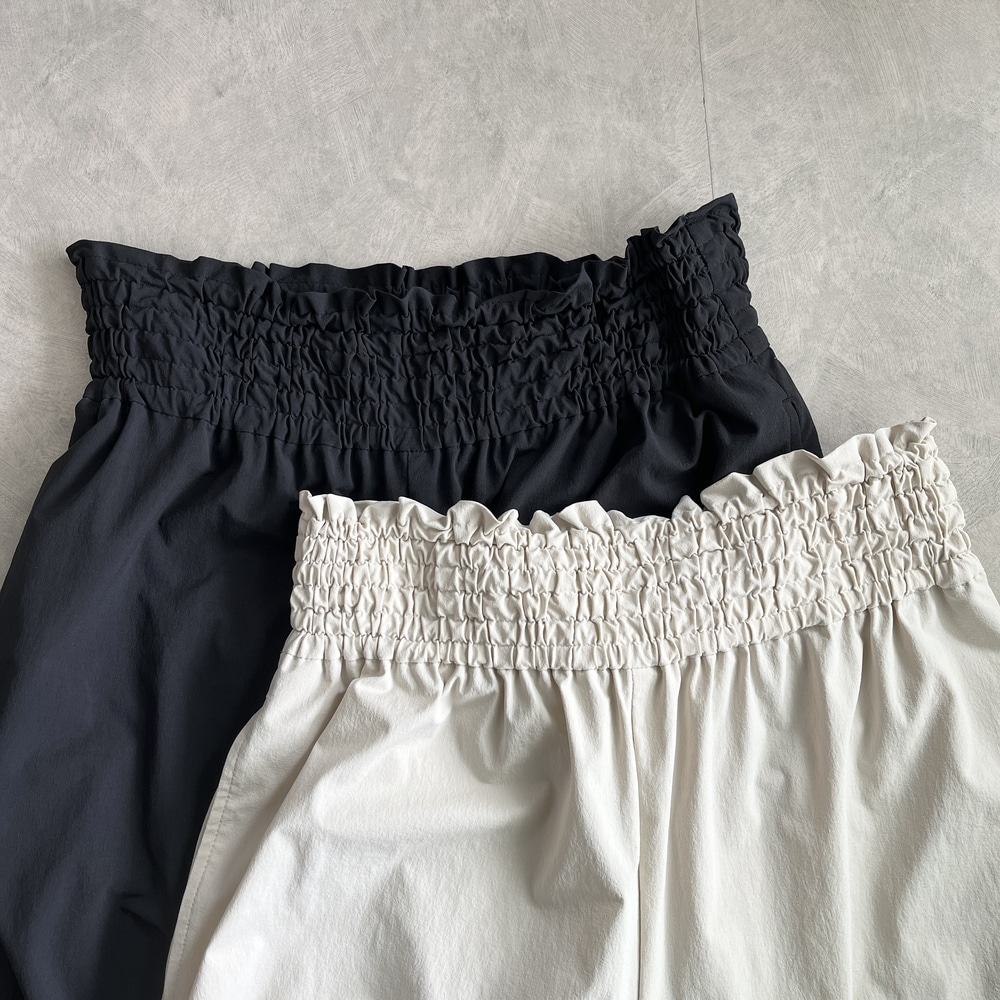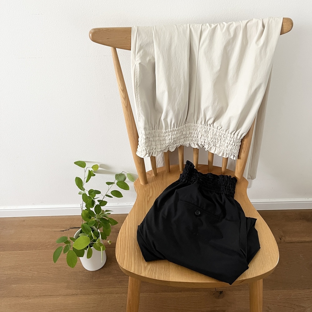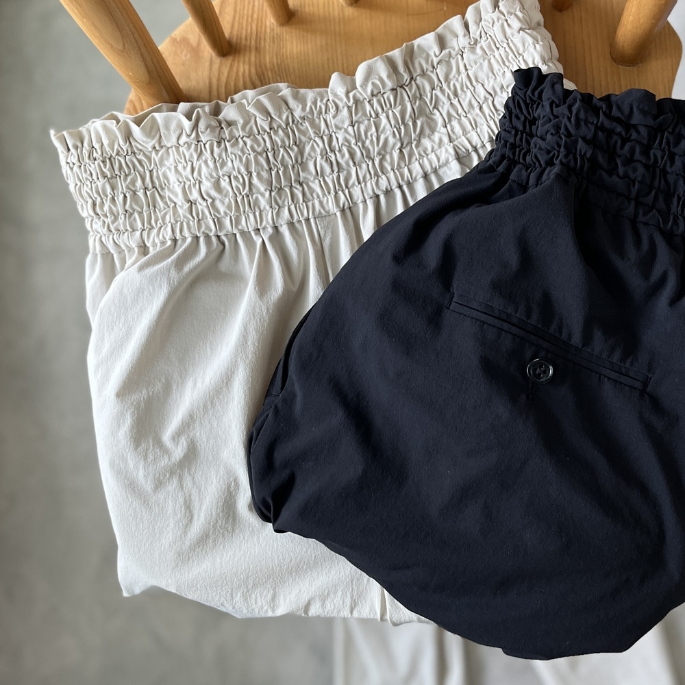 ウエストは太めのシャーリングゴムがアクセントになっています。