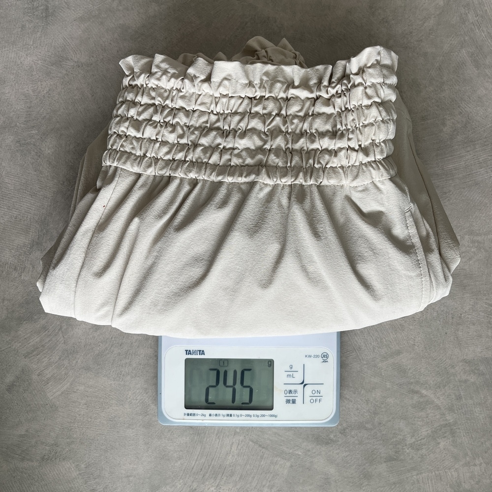 雨の日は白っぽいパンツだと汚れが気になることもありますが、これも撥水加工のおかげで安心。