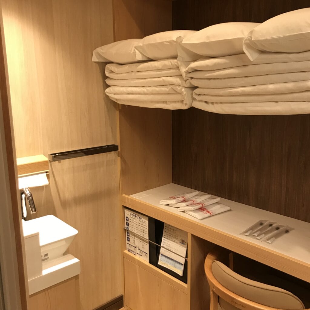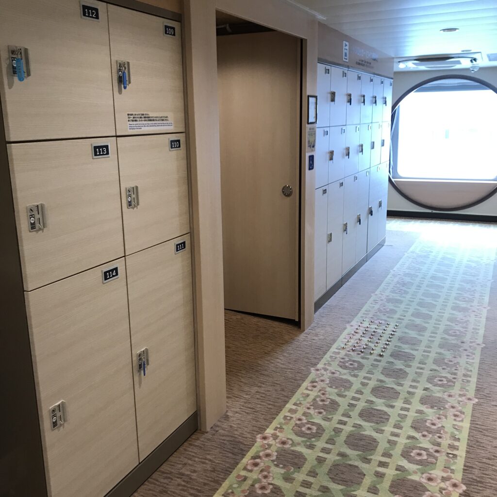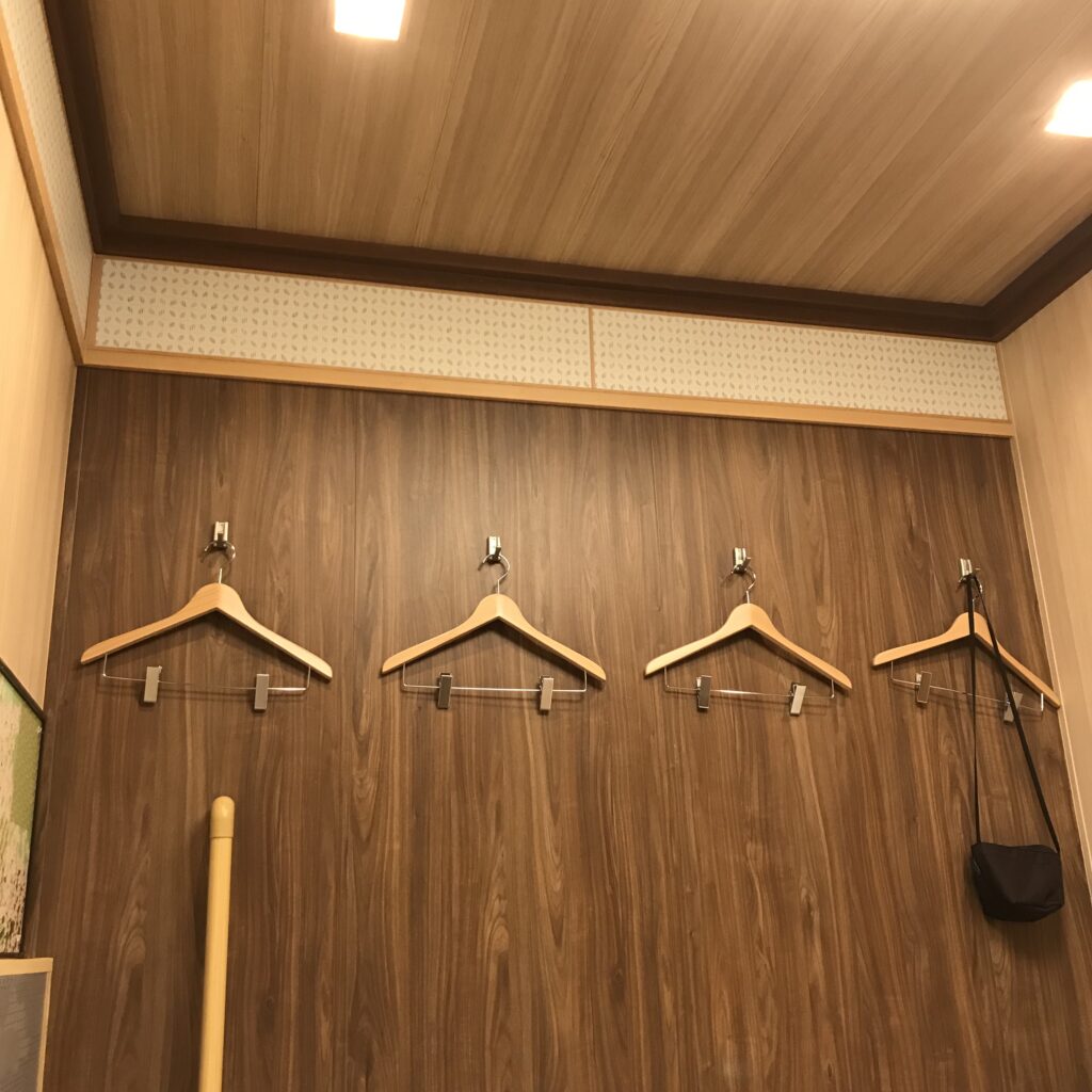 部屋の鍵は、内側からしかかからない仕様なので、貴重品は持ち歩くか、個室に入る手前のロッカーに預ける必要があります。