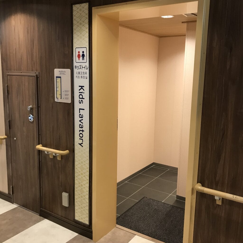 キッズトイレもしっかりと区切られたスペースにあり、手洗い場もキッズサイズ。