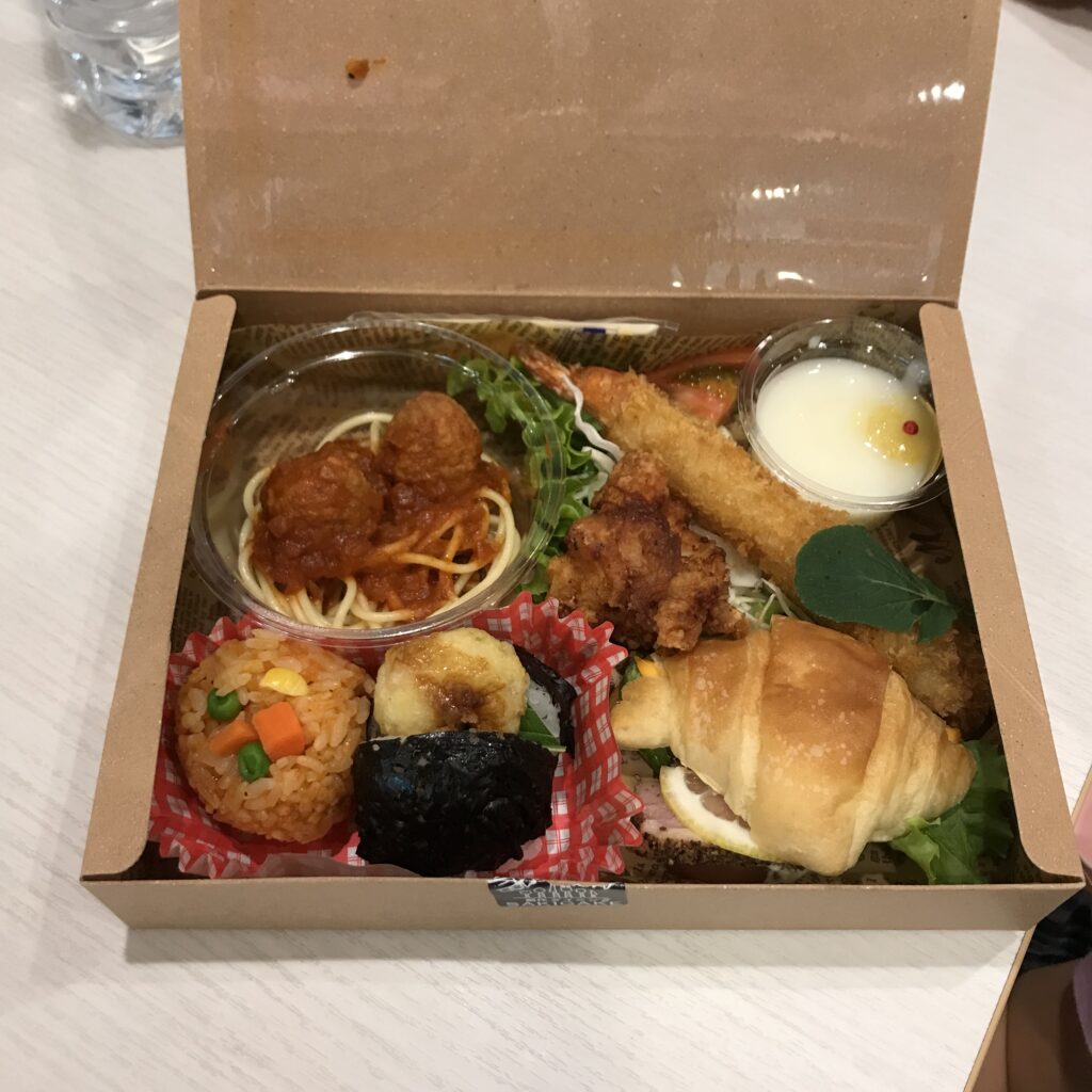 ロビーでお弁当に引き換えます。