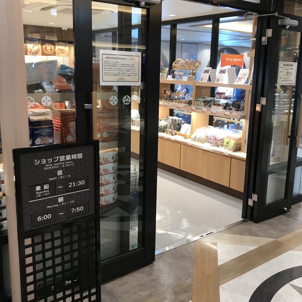 さんふらわあオリジナルグッズや大阪、大分のお土産品、お菓子、飲み物、アルコールなど、種類豊富でした。