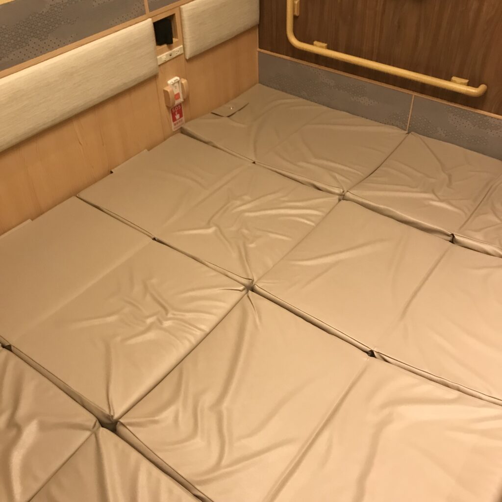 晩は、このマットレスをパタパタと伸ばしてシーツを敷いて、家族5人、川の字で眠りました。