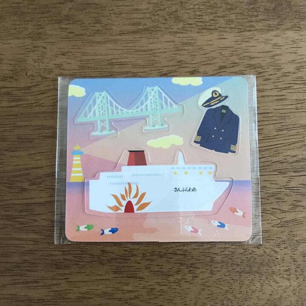 子供達には、乗船時、このようなシートタイプのマグネットをいただきました。