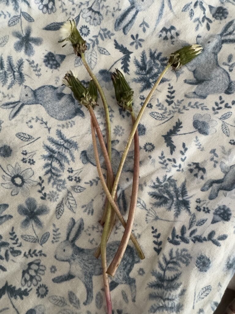 綿毛が開く前のたんぽぽを摘んできます。