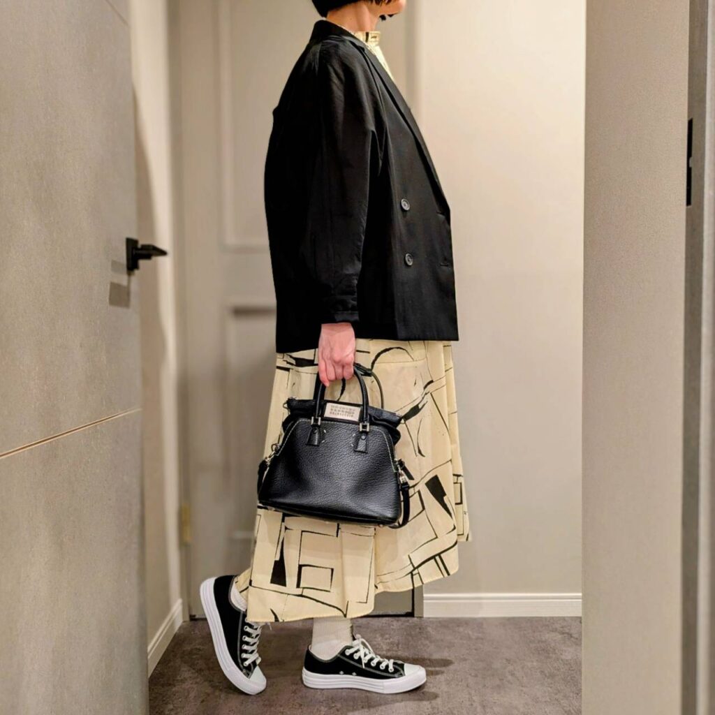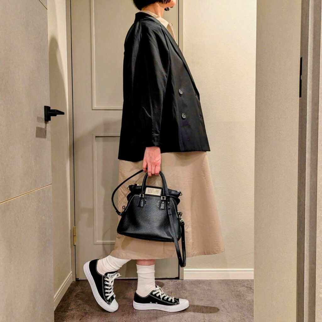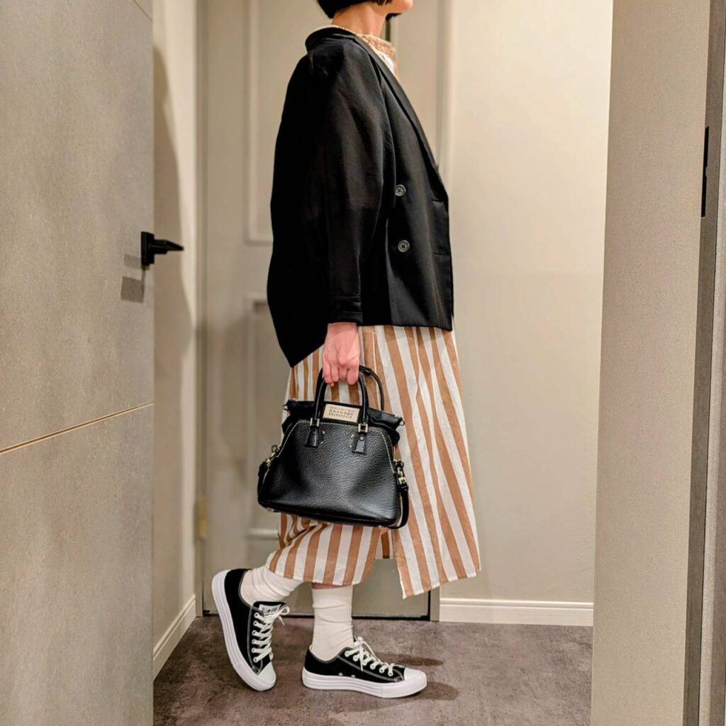 せめてバッグを黒じゃなくて明るめなアイテムに変えればポイントになって良かったかもしれません。