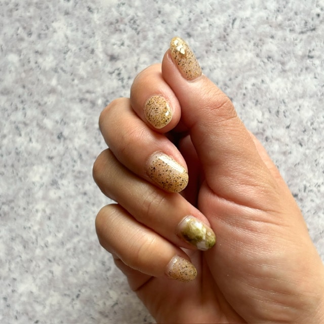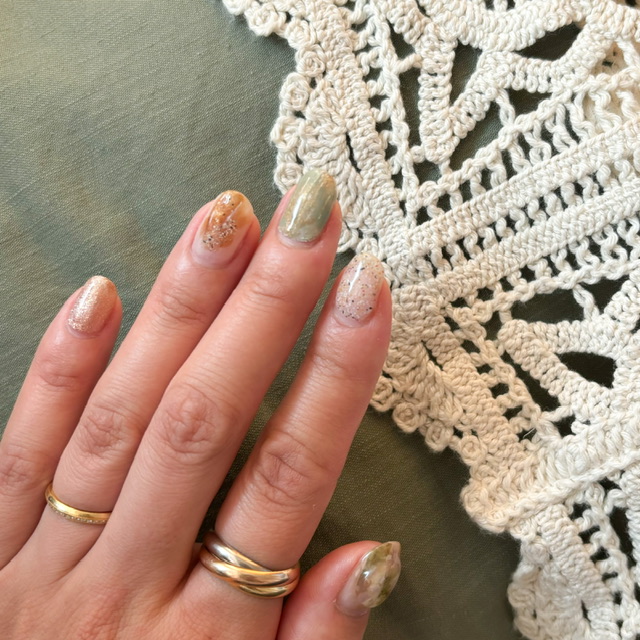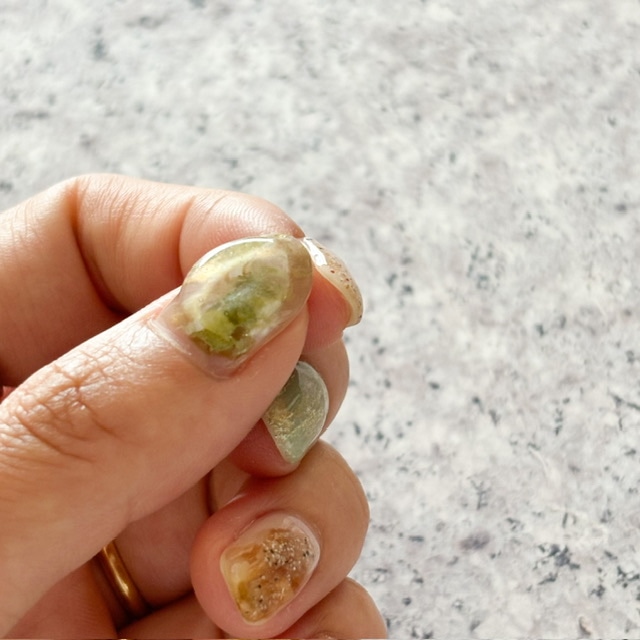 左手の親指にはストーンのような、ぷっくり透明ちゃんをのせてもらいました!