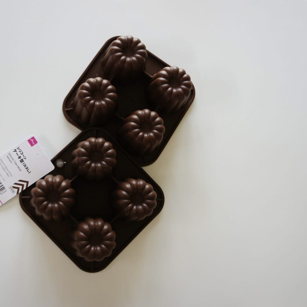 一大ブームだった当時はお店からこの型が消えたという逸話がある伝説の商品、カヌレ型(らしい)ですが、近所のダイソーに普通にありました。