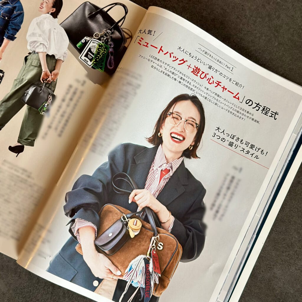 今年はバッグチャームが大人女性の間でトレンドになっていますよね。先月発売のLEE5月号でも特集が組まれていました!