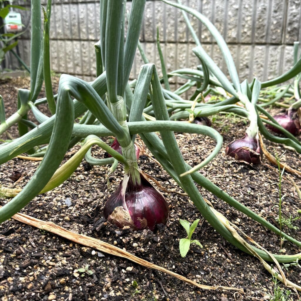 先日我が家の家庭菜園で赤玉ねぎを収穫しました。