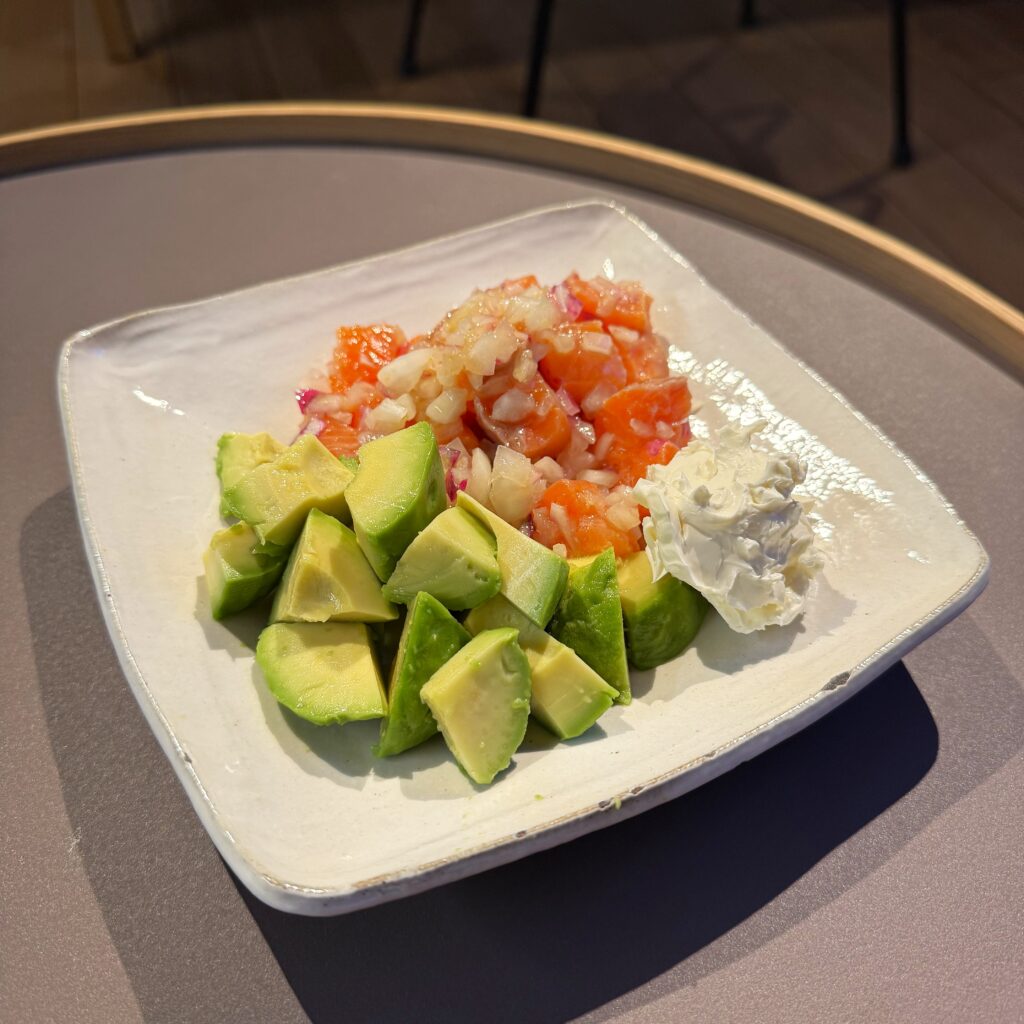 「お刺身サーモンとアボカドのタルタル仕立て」。
