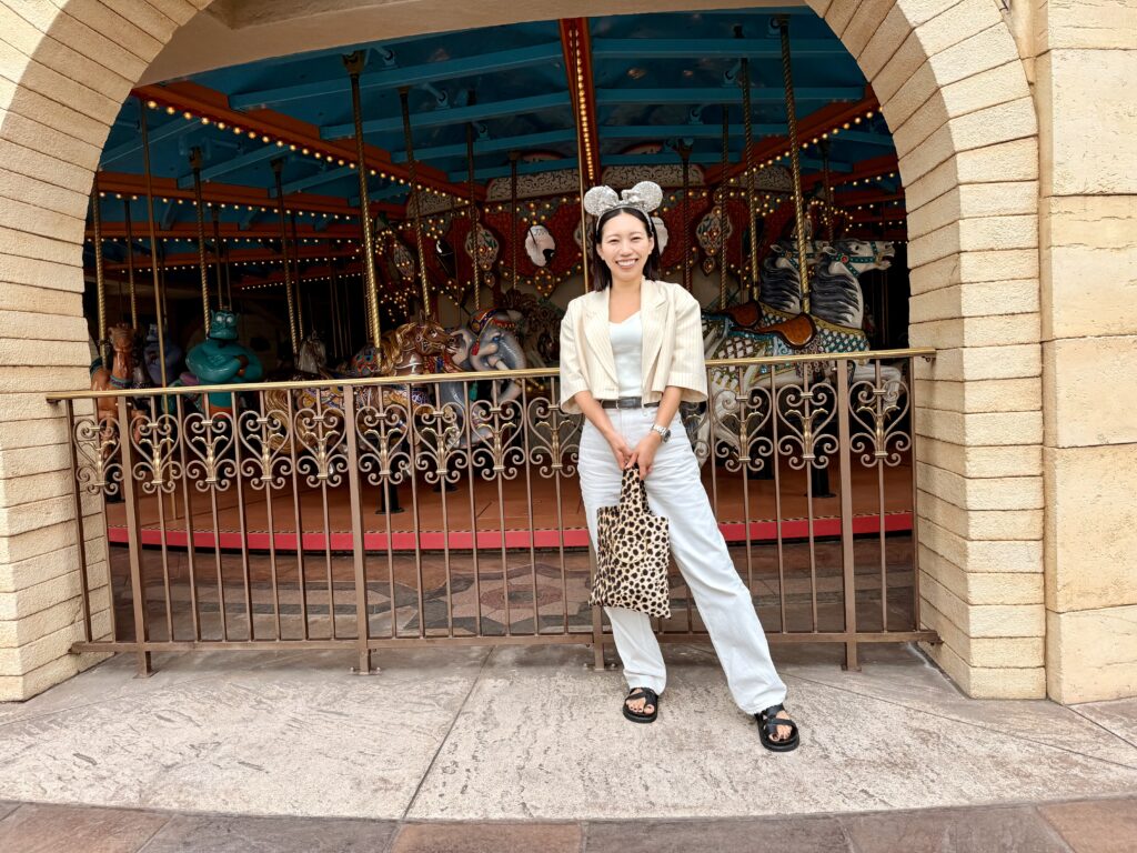 【東京ディズニーシー】気温22°/バッグが主役のホワイトコーデ【ディズニーシーで何着てた?】