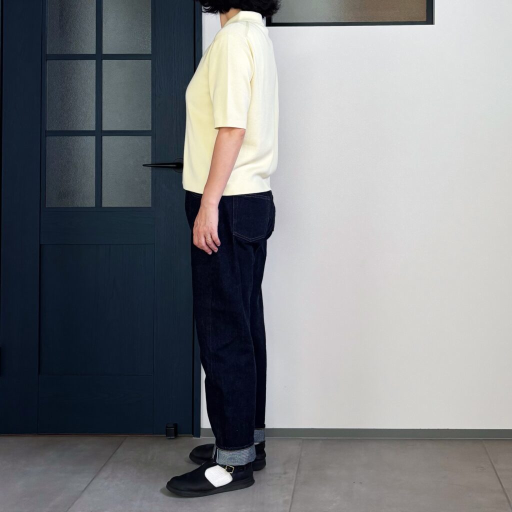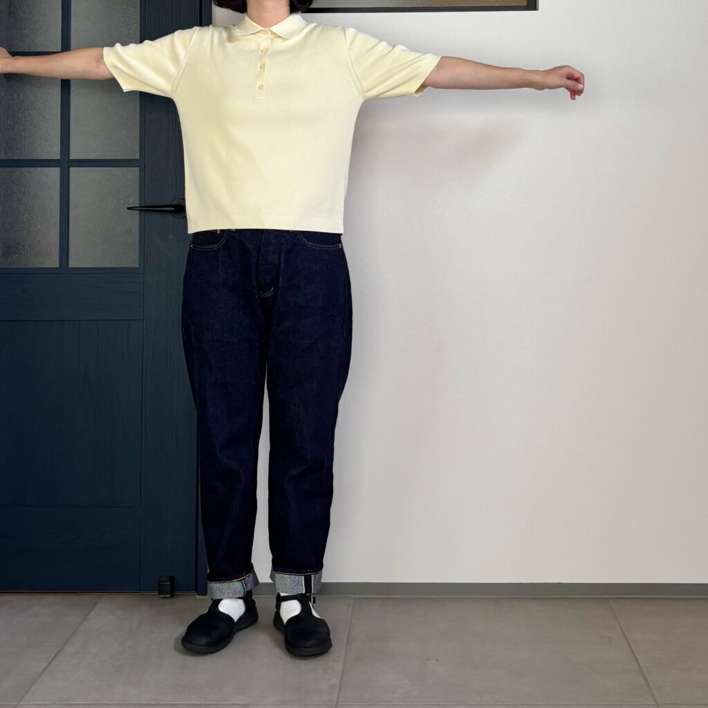 身幅は46cmで、体のラインを拾わない程度に細みシルエット。