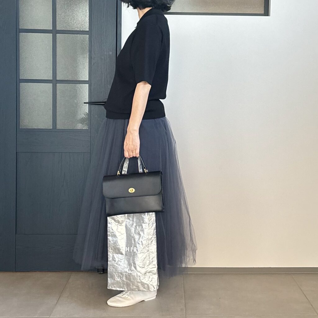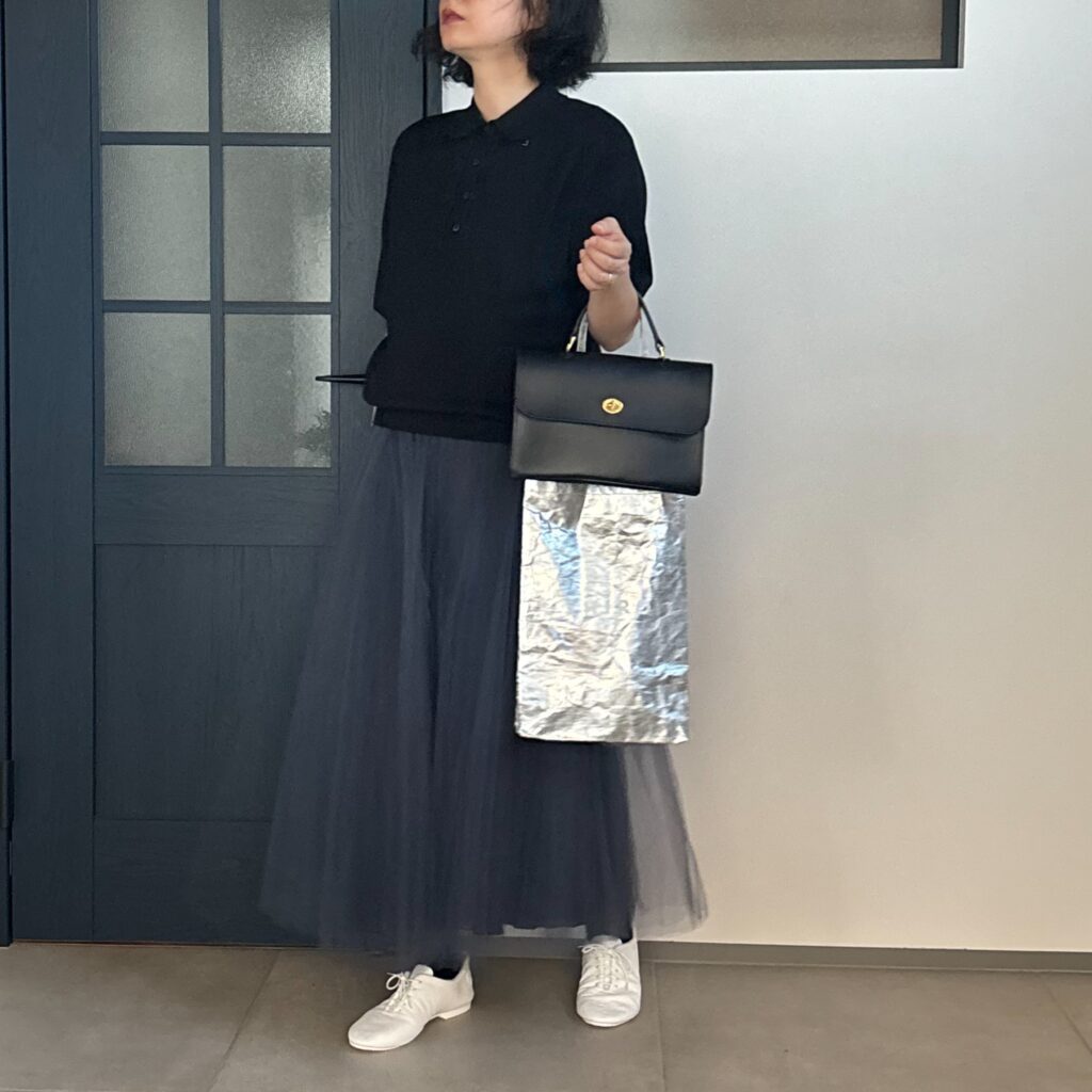 最後は、BLACKをお気に入りのチュールスカートに合わせて大人っぽく。