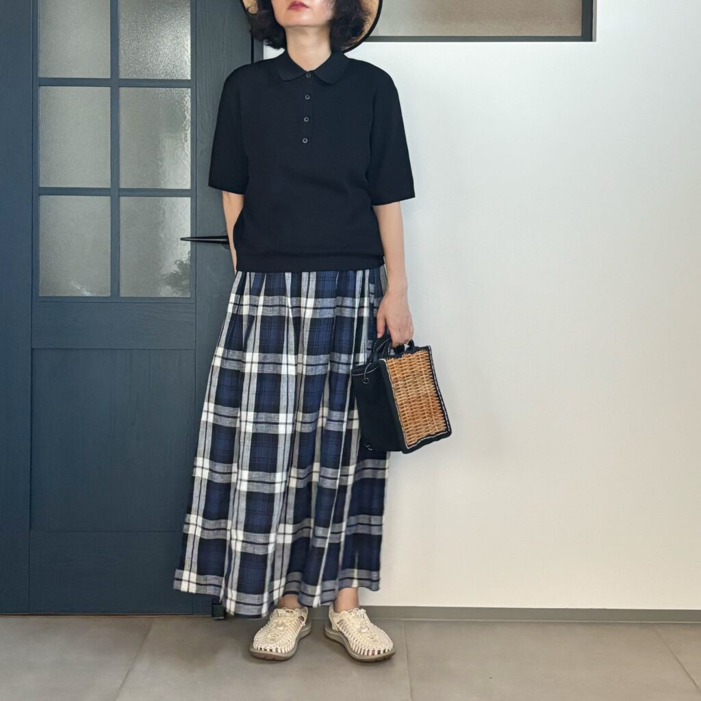 BLACKはどんなアイテムとも相性良いですが、中でもこういうブルー系のチェックと合わせたくて。自分比ですが、大人っぽい組み合わせです。