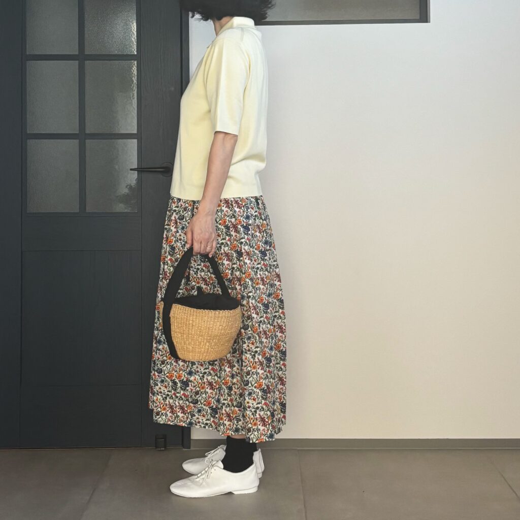 続いて、YELLOWと同系色の花柄スカートを合わせてみました。