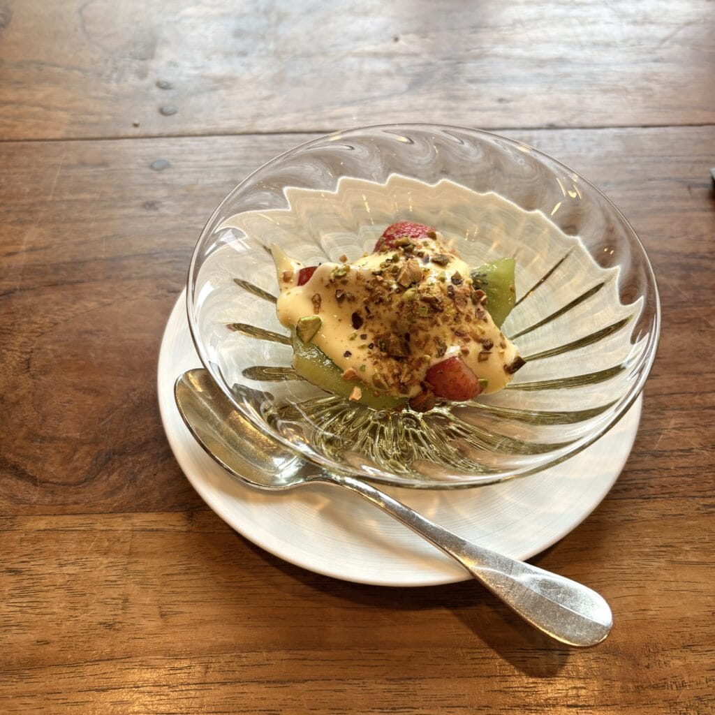 最後のおまけのデザートは先生がチャチャっと作って出してくれます。これはフルーツのマリネとマスカルポーネソース。おいしかった~!一緒に出してもらった紅茶も良い香りでした♡