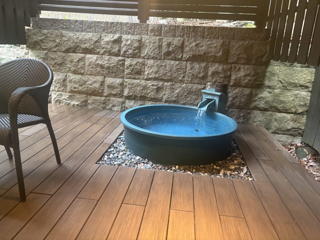 楽しみにしていた温泉は、とろりとした肌あたりで、「美肌の湯」と呼ばれるのも納得。ここは客室露天風呂付の部屋ばかりなので、大浴場はほぼ貸し切りでよかったです。