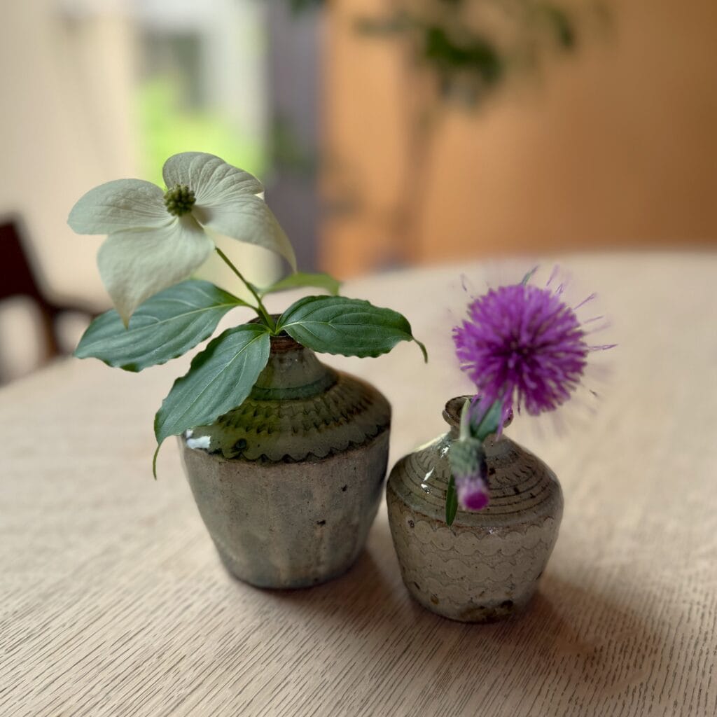 ちょうどお庭の花が咲いた時にちょこっと飾れる花瓶が欲しかったので