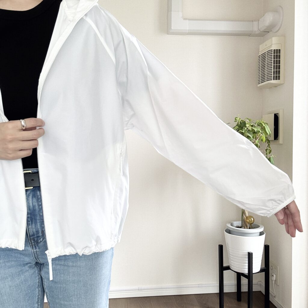 紫外線を防ぐUVカット機能+小雨程度の撥水加工+自宅で洗濯OK!という優秀なアウターです。