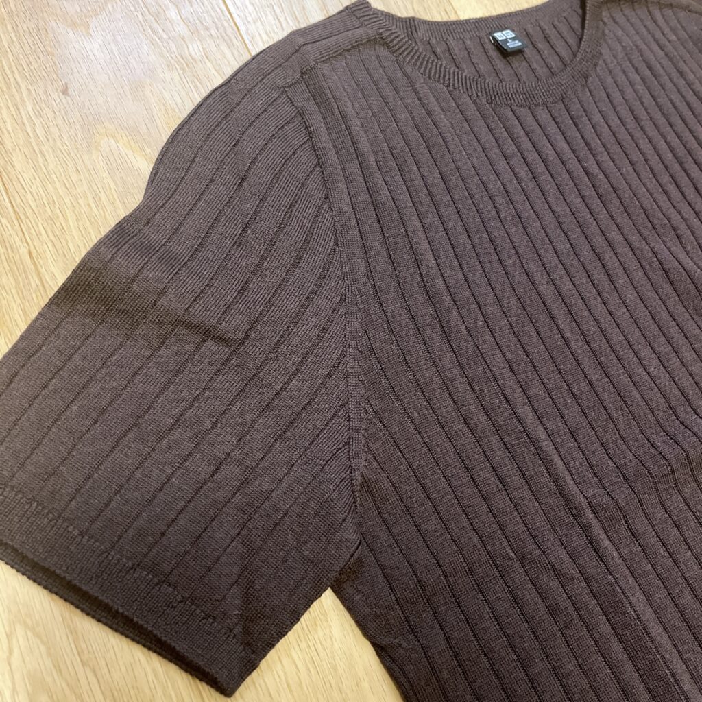 選んだのは、3Dメリノリブクルーネックセーター5部袖 ダークブラウン