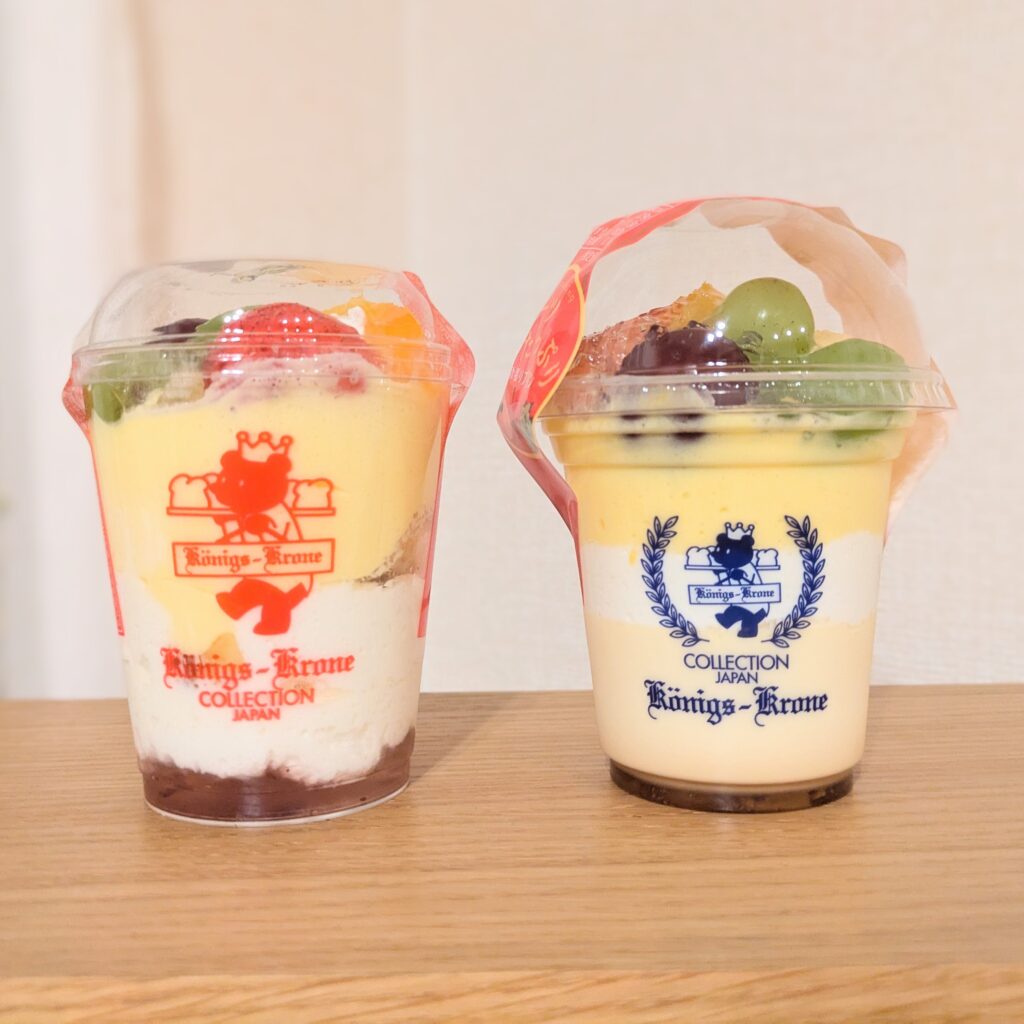 今回購入したのは、『フルーツデラックス』というカップデザートと、『デザートプリン白玉入』です。