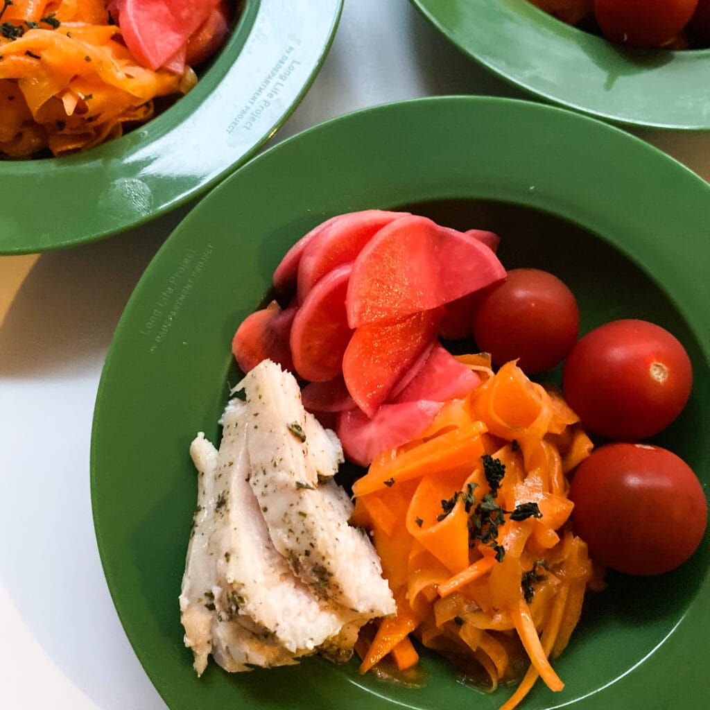 ビビットなカラーのお皿とお野菜のカラーで朝は視覚から元気をもらえます。