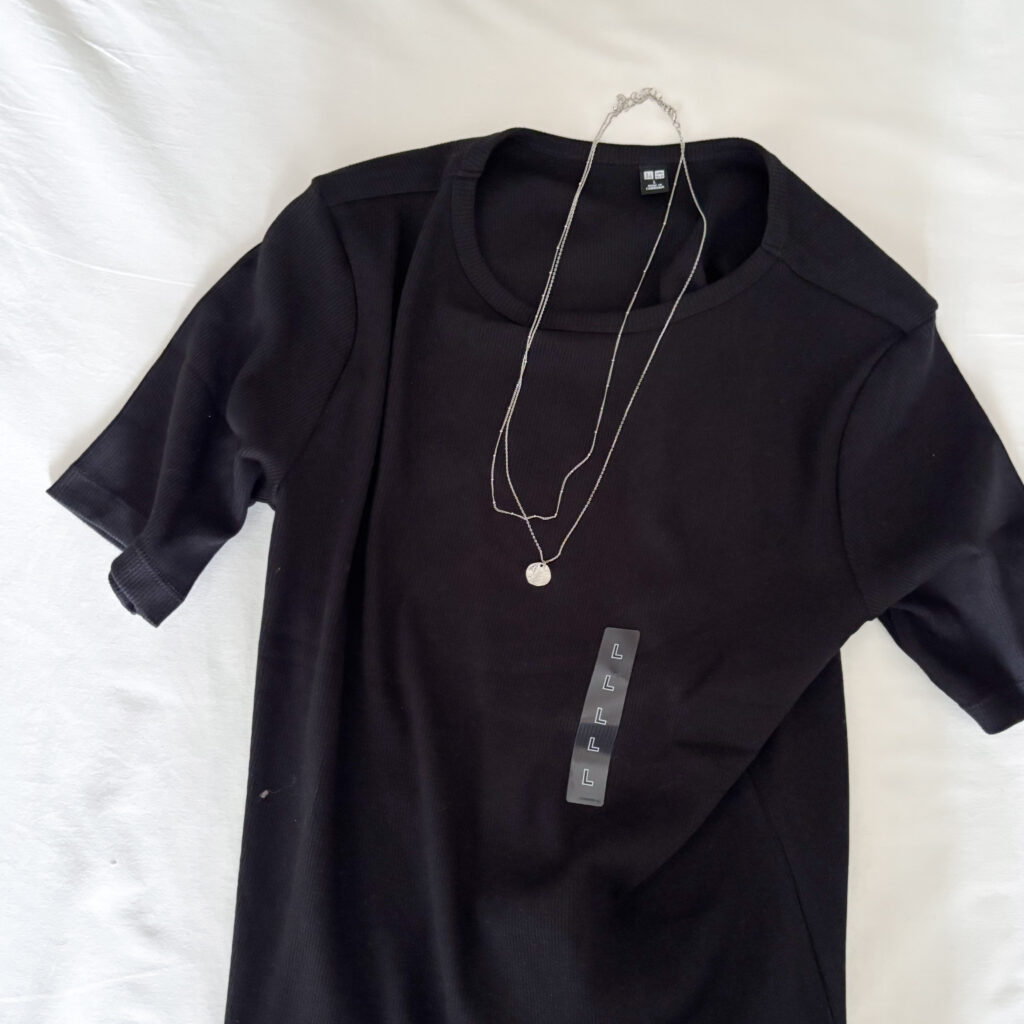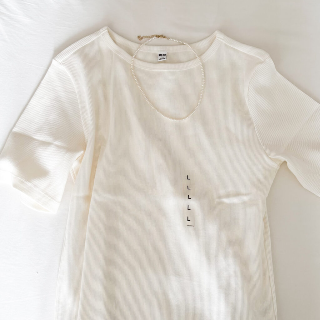 これからの季節に活躍すること間違いなしのリブTシャツを、白と黒の2色買いしました。