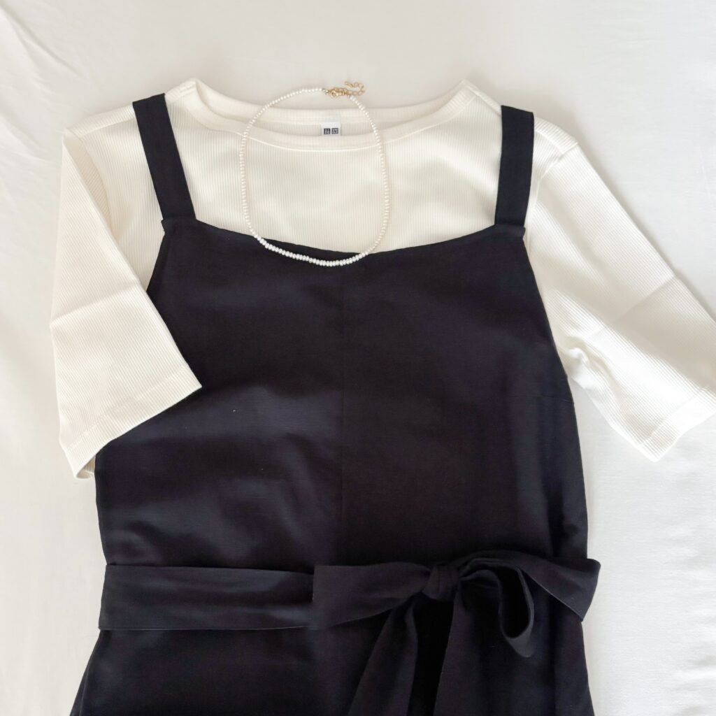 今年の春に買ったユニクロの『リネンブレンドジャンプスーツ』には白を合わせて。