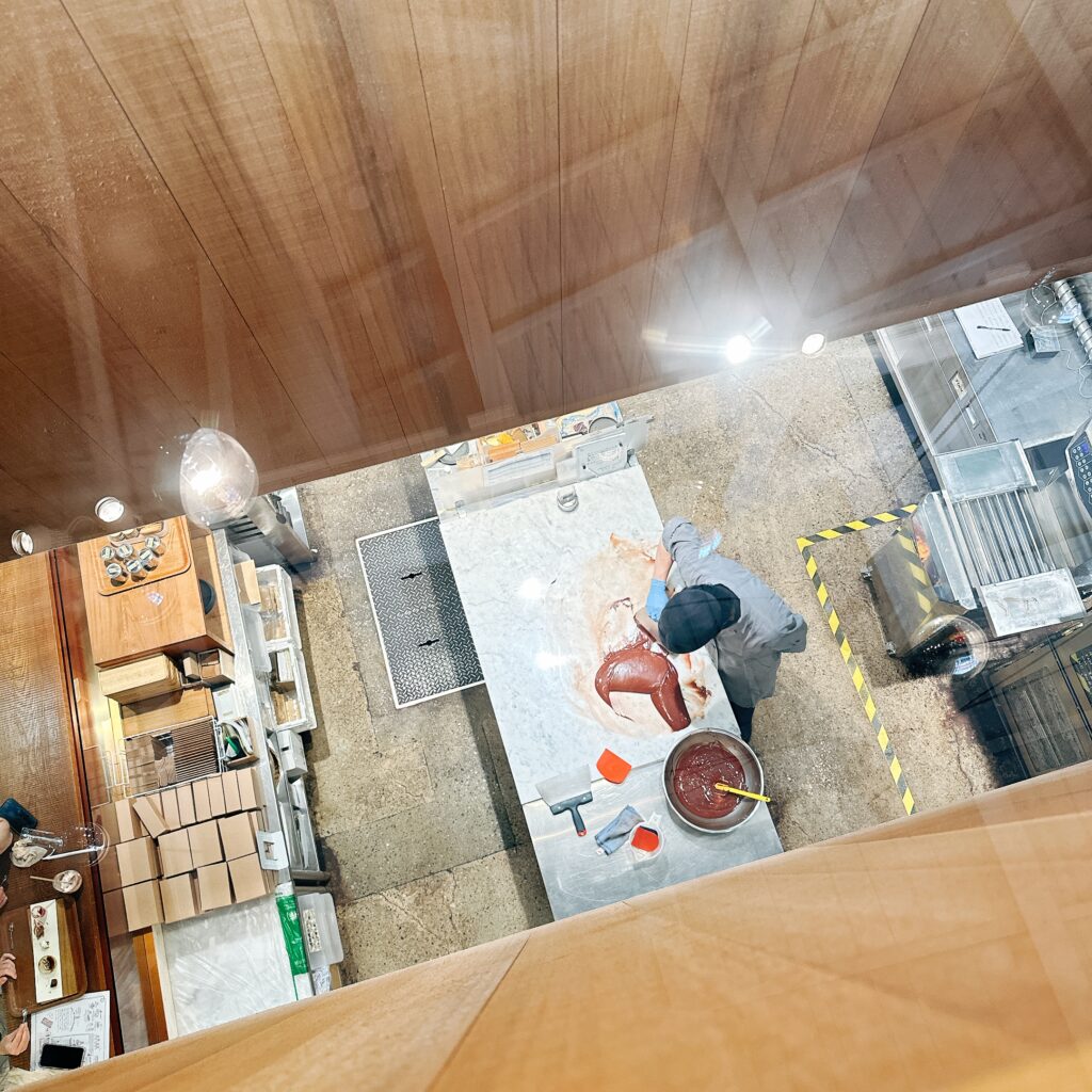眼下で、職人さんがチョコレートを作っている様子がのぞけちゃうんです!