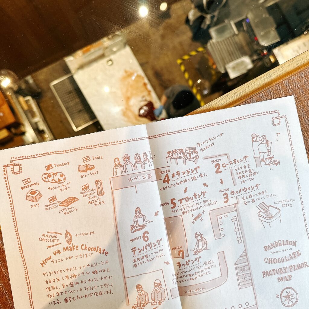 ドリンクと一緒に、ファクトリーの説明リーフレットを渡してくださったので、そちらを見ながら「今、どの工程なのかな〜」なんて考えながらチラッと見学。子どもも喜びそう!