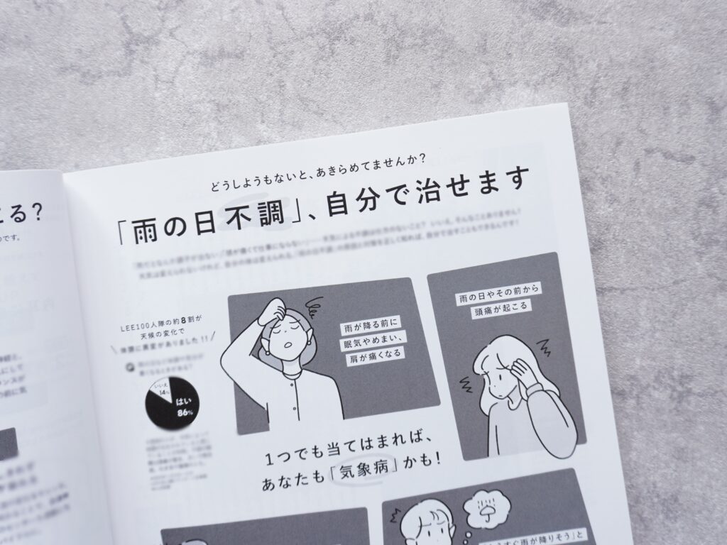 LEE6月号では”雨の日不調、自分で治せます”というなんとも心強い特集が!!じっくり読んでいます♩