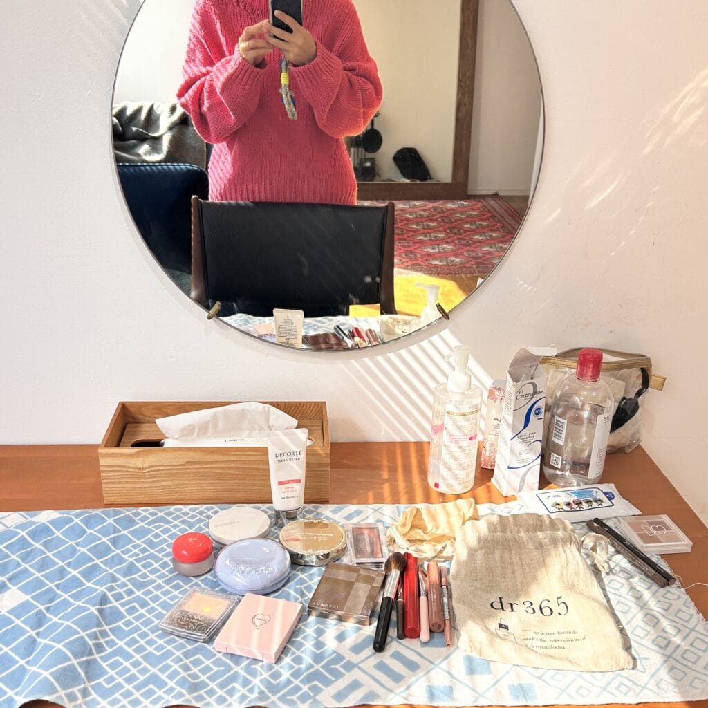 普段使っているものを全部持ってきてください。ということだったので、私の少ないメイク道具を。