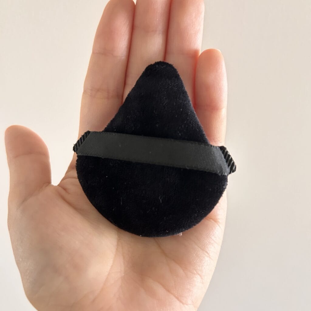 下地やコンシーラーをつけた後、最後にプレストパウダーでお肌をサラサラにするのですが、その時このパフ使うといいよ〜!と。